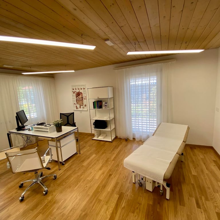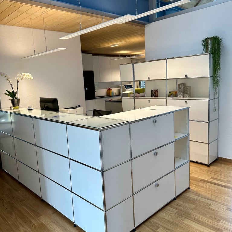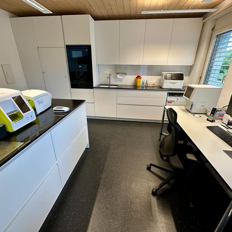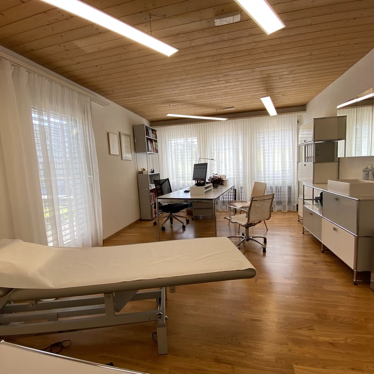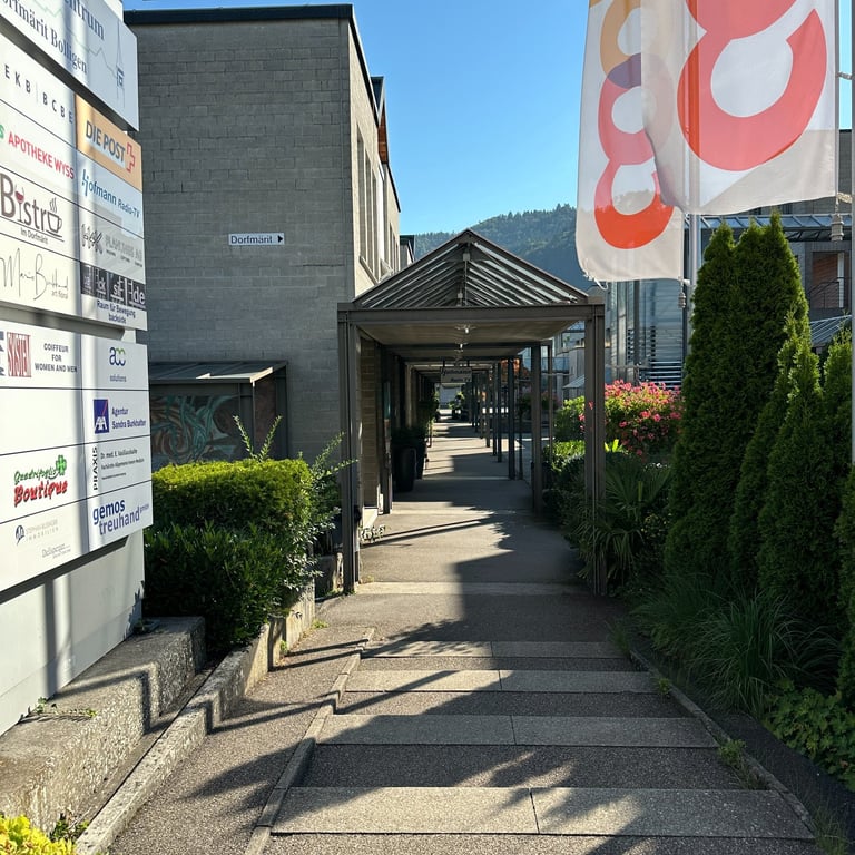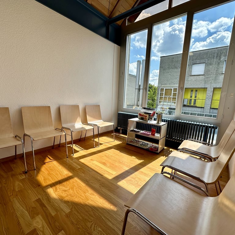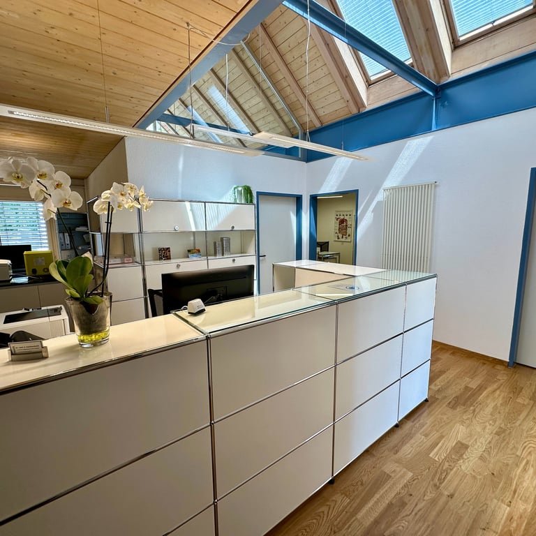 Die Praxisräumlichkeiten befinden sich im Einkaufszentrum Dorfmärit. Ein Patiententreppenlift ist vorhanden. Wir bieten unseren Patientinnen und Patienten frisch renovierte, moderne und funktionale Räumlichkeiten an. Davon können Sie sich selbst beim virtuellen Rundgang durch unsere Praxisräumlichkeiten überzeugen.